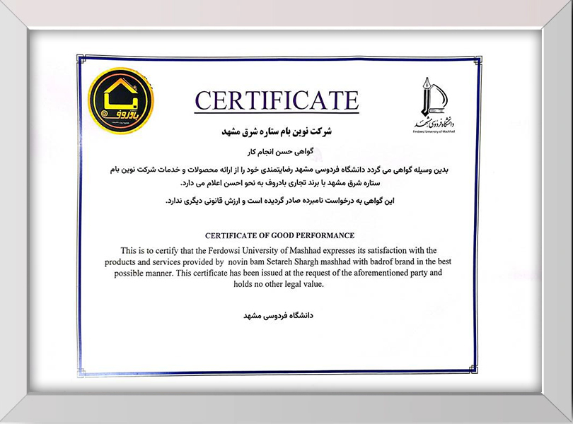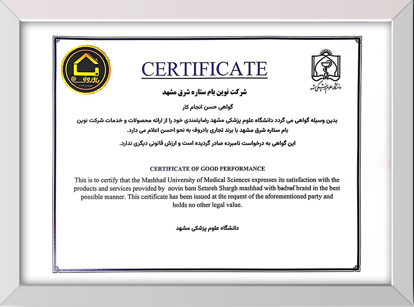 گواهینامه های گروه تولیدی نوین بام شرق مشهد