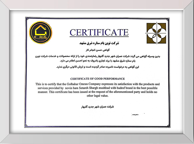 گواهی حسن انجام کار گروه تولیدی نوین بام